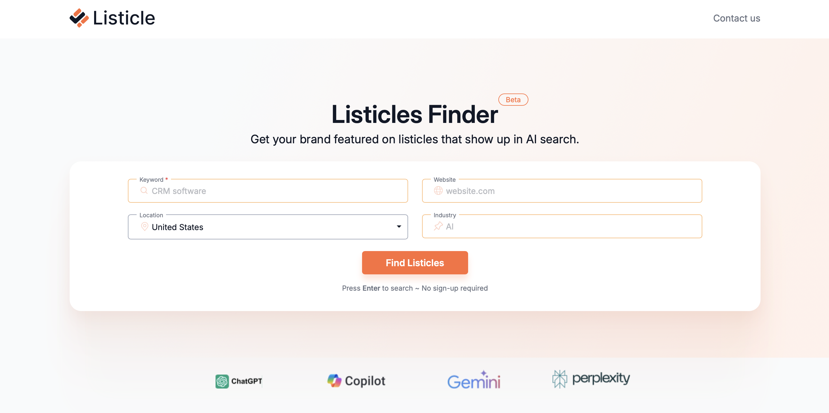 - Can they help you get a link from top listicles in your niche? Ahrefs’ data shows “Best X” list posts dominated the field. They made up 43,8% of all pages referenced in the responses, and the gap between them and every other format looked huge. You can find relevant listicles in your niche using free services, like listicle.com.