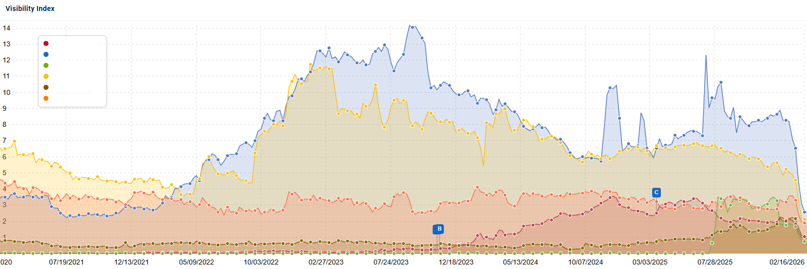 That same organic trajectory has continued into mid-February for all of the subfolders I analyzed, using the Sistrix U.S. Visibility Index:
