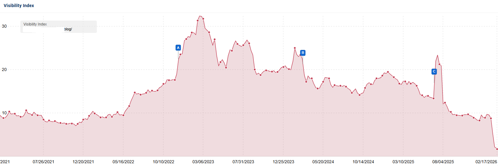 recently wrote about an unconfirmed Google algorithm update that rolled out in mid-January 2026, which negatively impacted the organic search visibility of dozens of major brands. For most of the impacted sites I analyzed, the impact was disproportionately targeted to the company’s blog, or another folder containing informational articles and resources.