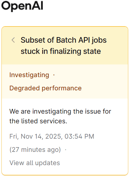 ChatGPT API Jobs Stuck Outage