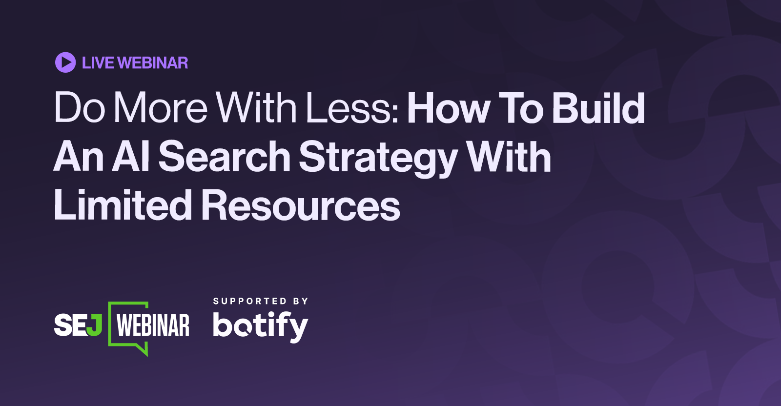 Join us for “Do More With Less: How To Build an AI Search Strategy With Limited Resources,” a practical webinar designed to help small teams create a strong, AI-powered SEO strategy that actually works.