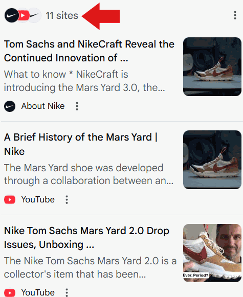 The screenshot below shows how Nike is taking charge of the conversation on AI Mode with both text and video content.