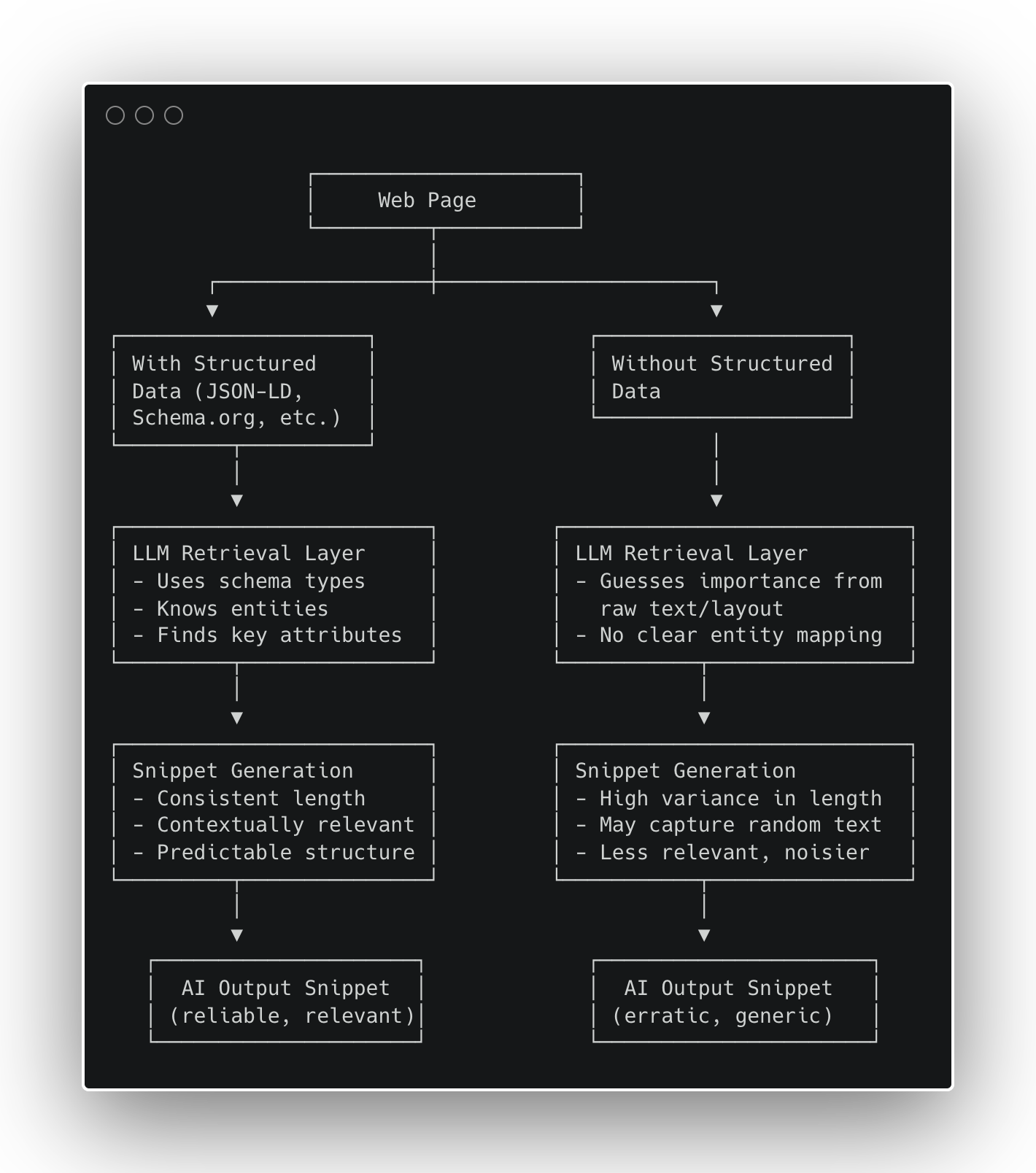 - Disambiguation & grounding: Schema.org reduces the model’s search space (“this is a Recipe/Product/Article”), making selection safer.