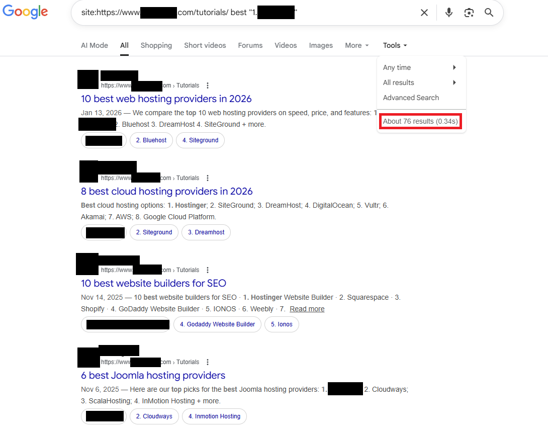 Among the 1,980 tutorials indexed in Google’s results, 76 of them are self-serving listicles, 38 of which have been updated to include “2026” in the title:
