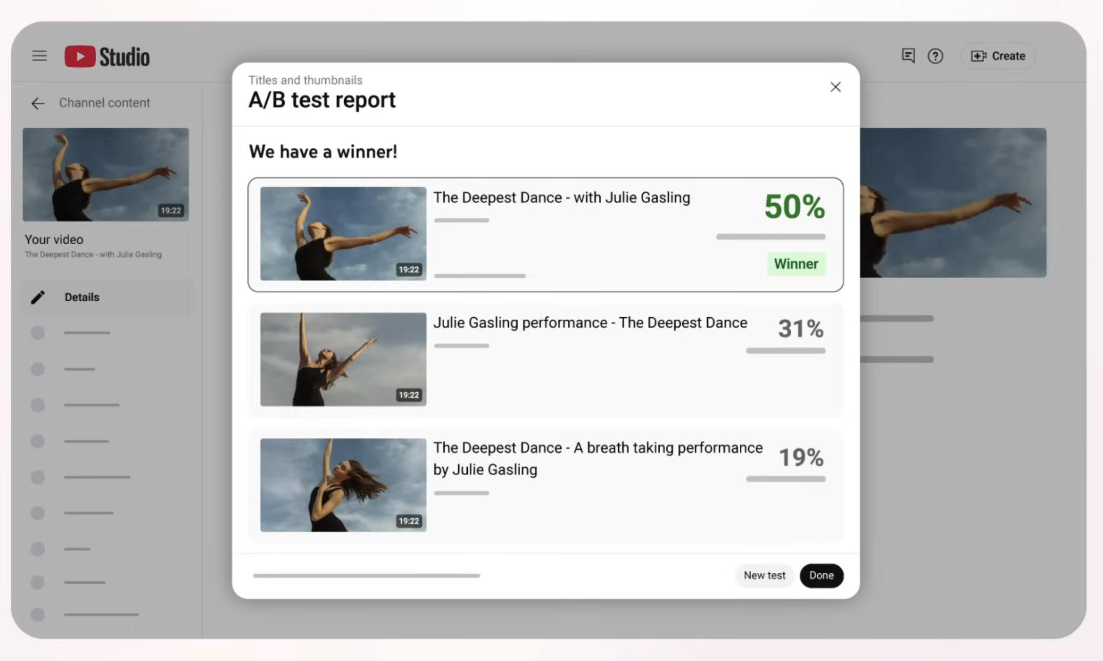 “Winner” means one version outperformed others at driving watch time per impression. YouTube believes this version will lead to better performance.